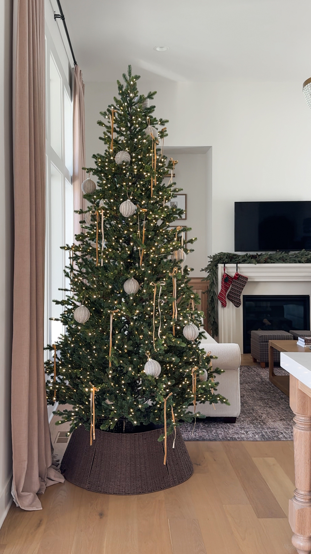 We moved into a new home last year around Christmas and did not have time to buy a tree, so I have been SO excited to pick one out this year! Our ceilings are 12’ tall so I knew we would want something on the larger size. I had been eyeing all the Home Depot trees and they rapidly started selling out, so I snagged the 9’ Elegant Twinkling Grand Fir and I love it so much!