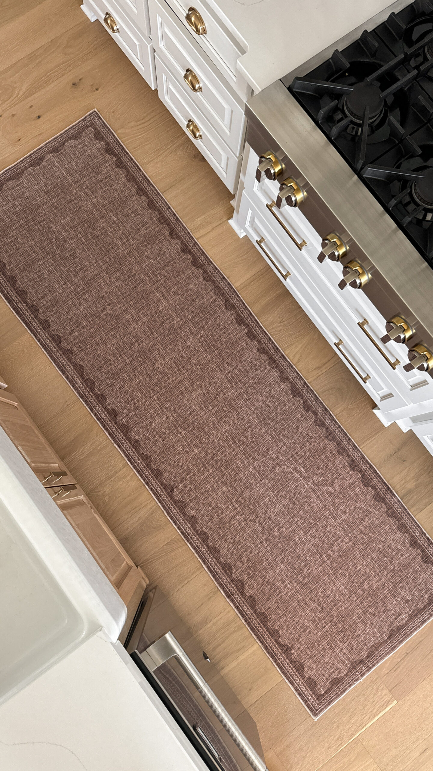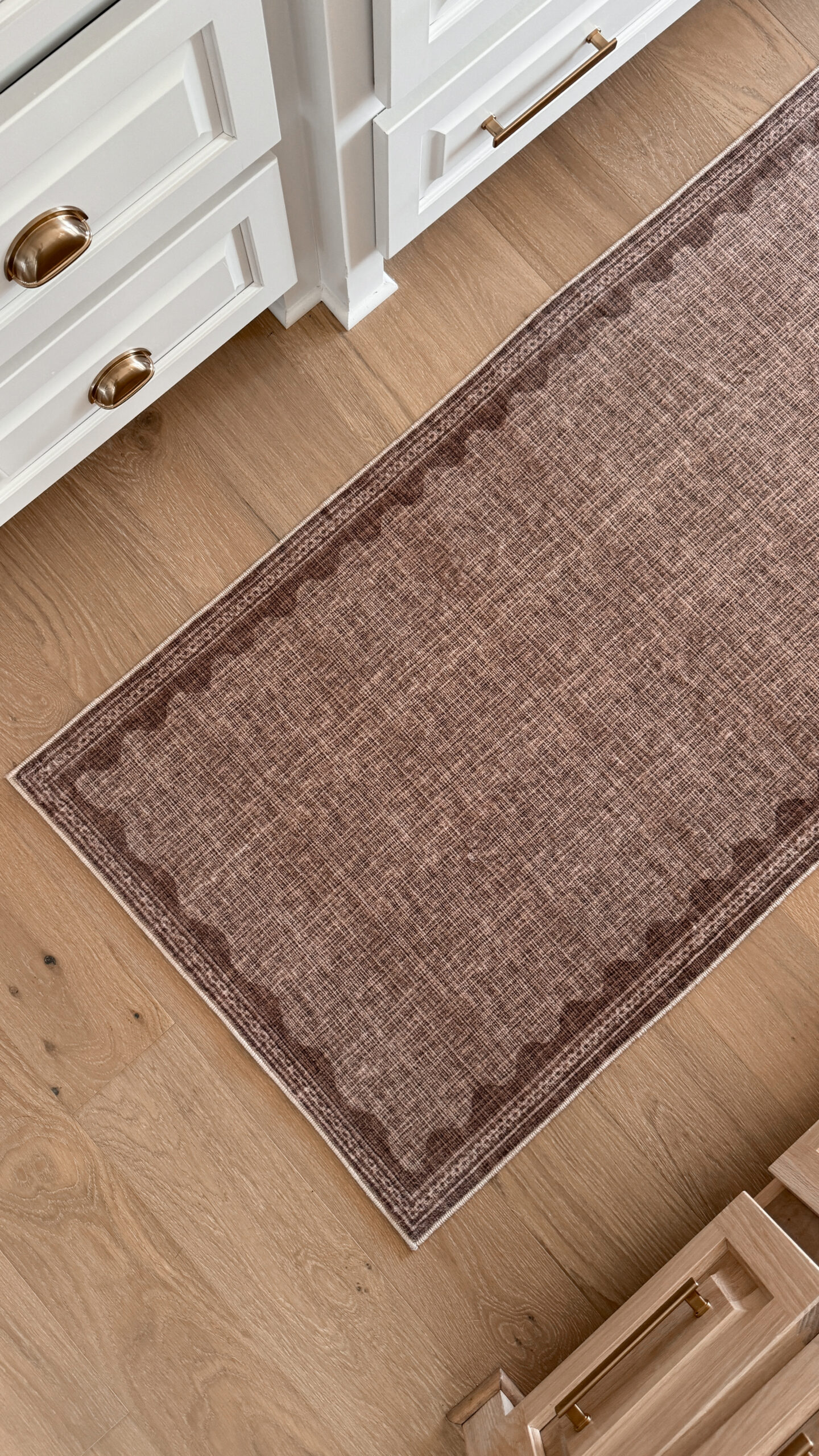 It’s a soft, neutral brown that adds such a cozy warmth to the space without being too bold. The scalloped details give it a really pretty, elevated touch. It looks way more expensive than it is, I got the 2.5′ x 8′ size for just $40! The runner also comes in other sizes and colors too if you’re looking for a different fit. This is the color Coffee!